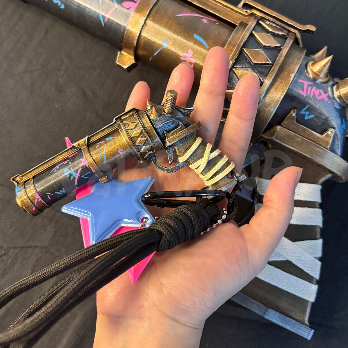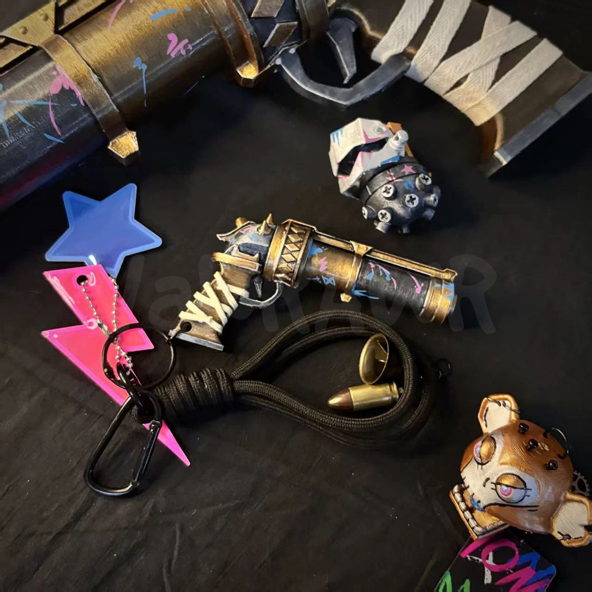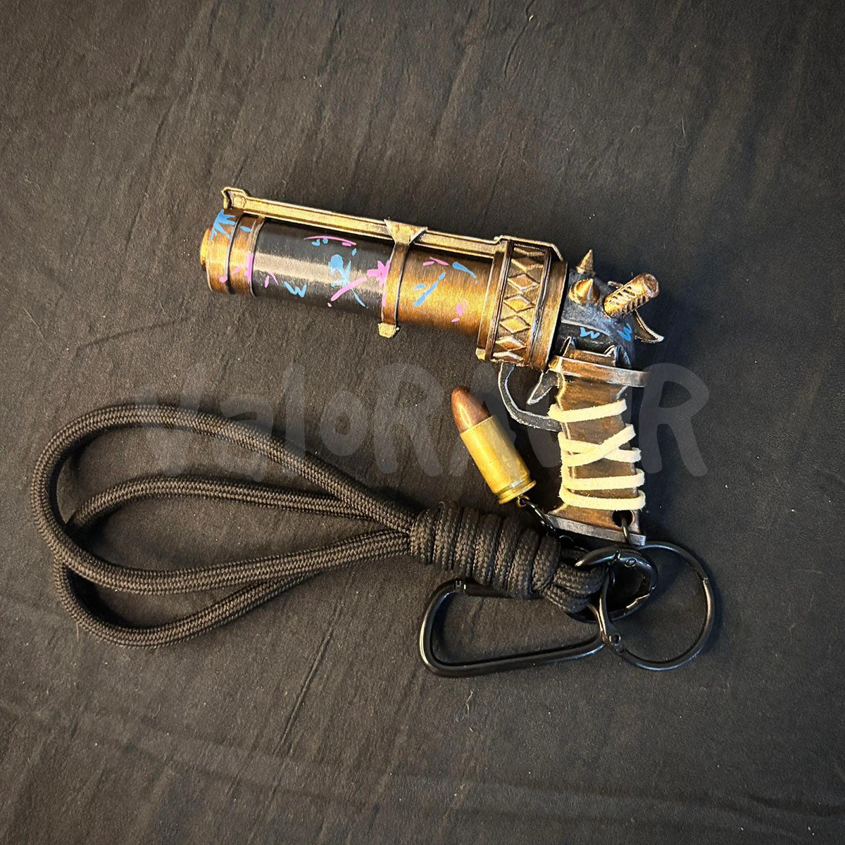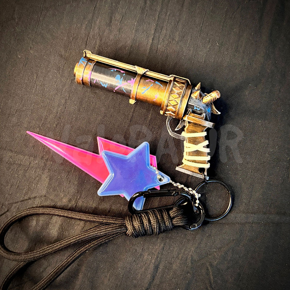 Lock and load your keys with this Arcane Sheriff skin keychain, inspired by Valorant’s legendary crossover! 3D printed with bang-on accuracy, it’s the perfect pocket-sized flex for true Valorant gamers. Choose your sidearm flair – will it be Star & Bolt or the classic Bullet charm? Either way, it comes equipped with a tough cord rope and carabiner, ready to clip onto your gear like a true gunslinger.