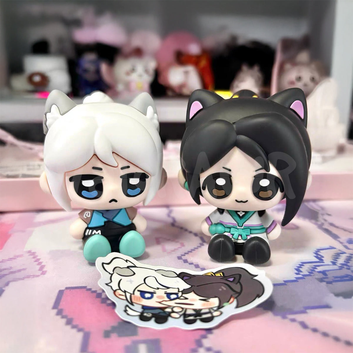 Bring some agent charm to your setup with these lovable duo. Crafted from durable PVC, these adorable mini figures feature Jett and Sage reimagined as chibi cat agents—perfect for Valorant fans who love a dash of cuteness. Small but sturdy, they're the purr-fect companions to brighten up your desk, shelf, or battle station.